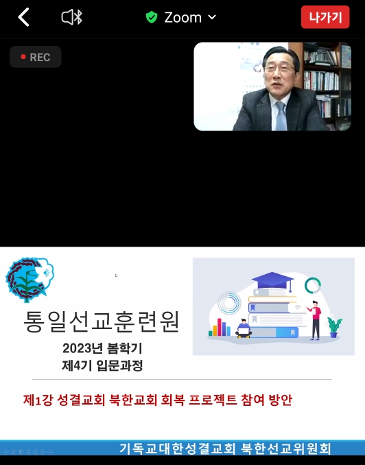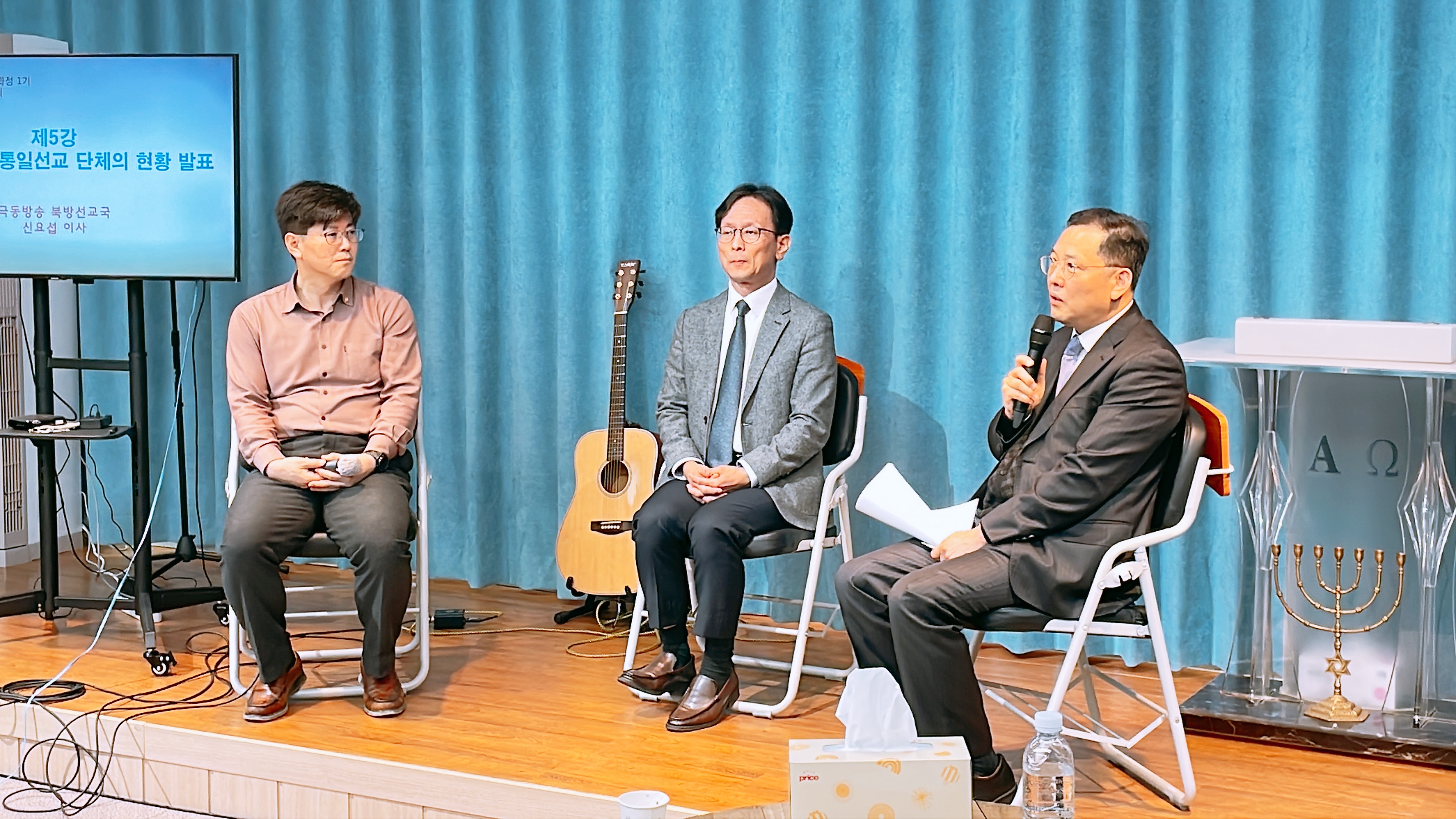 통일선교훈련원 원장으로 섬기시는 최진선 목사(인정교회)의 설교와 북한선교위원장 유병욱 목사의 축도로 개강예배를 마친 후에 타 교단의 북한/통일선교 현황을 정규재 목사(장로교 합동), 정종기 교수(장로교 고신), 김영민 목사(기독교대한감리회)를 통해 듣고 협력방안을 토의하였습니다.