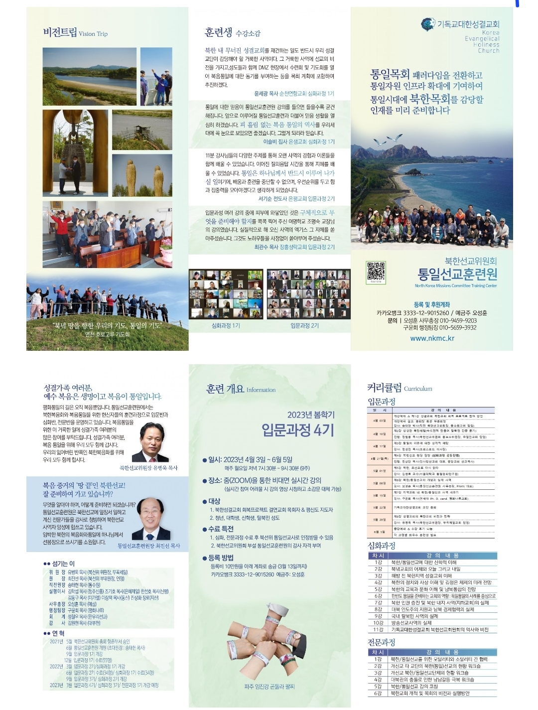 기독교대한성결교회 북한선교위원회 부설 통일선교훈련원에서는 입문, 심화, 전문과정을 운영하고 있습니다.